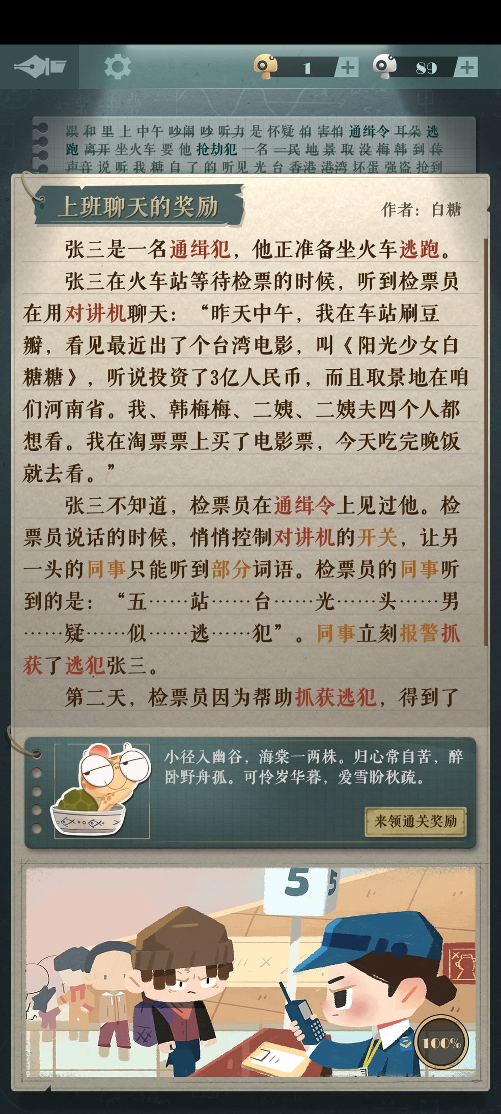 4、第二天,检票员因为帮助抓获逃犯,得到了奖励