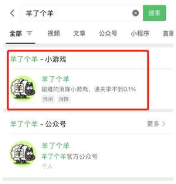 2、在输入框内输入关键词:羊了个羊,点击搜索可以在搜索内容当中查找;