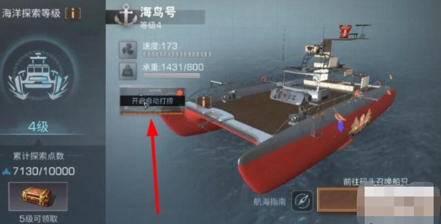 3、在航海页面,可以在中间位置看到开启自动打捞这个选项。