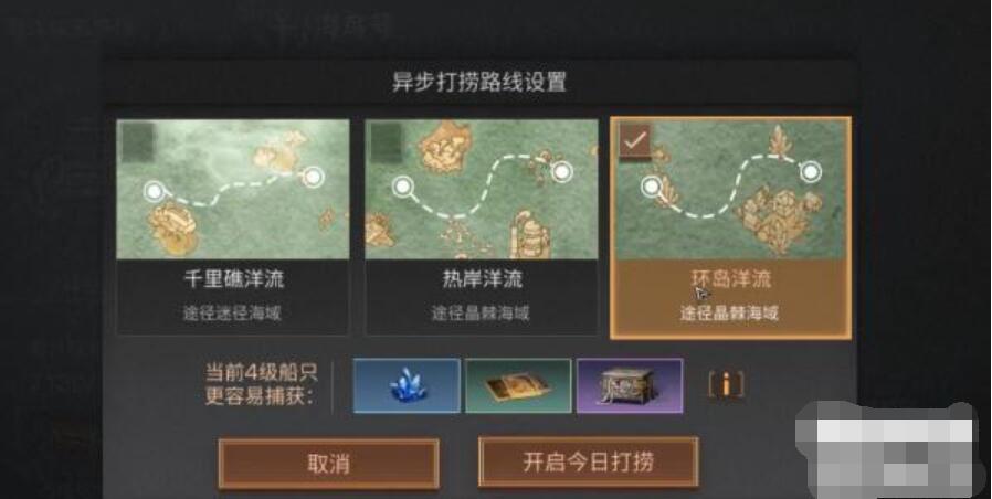 4、选择好打捞路线,就可以开启今日打捞。